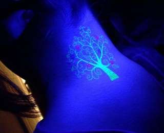 Если вы давно мечтаете о татуировке, но престижная должность, банальный страх перед тем, что подумают другие и прочие обстоятельства не дают вам это сделать, то флуоресцентная татуировка создана специально для вас! Светящаяся татуировка наносится специальными флуоресцентными красками, которые совершенно невидны при дневном свете и раскрывают всю свою красоту лишь в ультрафиолете. К тому же флуоресцентными элементами можно дополнить уже имеющуюся татуировку, придав ей оригинальный вид.