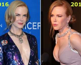 Но не прошло и двух лет, как красавица решила вернуться к прежнему облику. В феврале сайт RadarOnline узнал, что она избавилась от имплантатов, потому что не хочет иметь в своем теле ничего «отравляющего». По словам друга актрисы, она перенесла обратную операцию в прошлом году. Январь-2016: Николь на балу ЮНИСЕФ (слева) и на премии гильдии киноактеров США