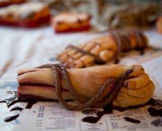 В восточном Лондоне состоялось специальное мероприятие, посвященное раскрутке нового фильма ужасов The Helpers. В кондитерской отданной на растерзание специалистам чернушного пиара, продавались части тела женщин, "изготовленные из совершенно съедобных компонентов".
