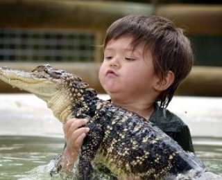 У каждого свои игрушки в этом возрасте. У девочек куклы, у мальчиков машинки. Однако отец этого малыша и владелец зоопарка считает что его сын должен играть с животными, в том числе и с крокодилами.
