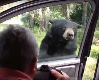 Пока папа занимался фотосъёмкой, медведь решил проверить содержимое автомобиля и открыл дверь. Дети отделались «лёгким» испугом.