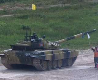 Экипажи российских танков Т-72 преодолели трассу с препятствиями, среди которых были курган, брод, колейный мост, скоростной участок. Выстрелом из танковой пушки они поразили мишени на удалении почти два километра, а выстрелом из танкового пулемета – воздушную мишень на расстоянии 900 метров.