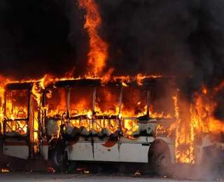 В Париже группа молодых людей вынудила остановиться автобус, перегородив перед ним дорогу мусорными баками. После того, как транспорт остановился, в него полетели камни и бутылки с зажигательной смесью.