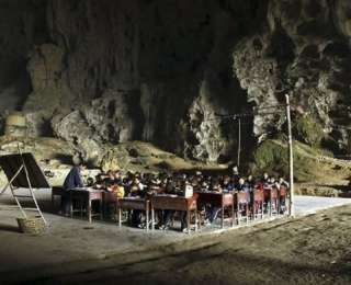 Деревня Жондон, провинция Гуйчжоу, Китай, расположилась в пещере, находящейся на высоте 1800 метров над уровнем моря. Здесь живет около сотни человек, которым приходится еженедельно 15 км добираться до рынка, чтобы купить продукты.