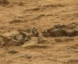 На фото можно увидеть контуры позвонков неизвестного животного, переходящих в хвост, который далее скрывается под каменистой поверхностью Марса. Если будет доказано, что это скелетные останки древнего существа, данная находка станет окончательным подтверждением факта, что, что жизнь на Марсе действительно была, и, возможно, до сих пор существует.