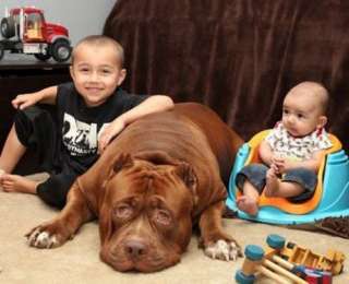 В Великобритании питбуль Халк стал няней для трёхмесячного младенца.