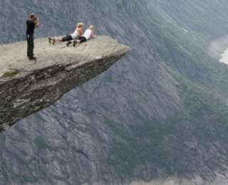 Но несмотря на это, огромное количество туристов приезжает сюда каждый год, что бы просто посидеть на ней. Какие же нервы у этих людей должны быть, что бы сидеть на краю утеса и беззаботно фотографироваться?