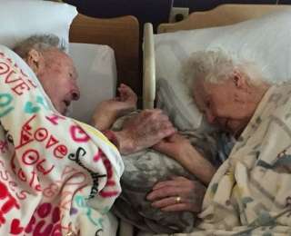 «Моя умирающая бабушка, 96 лет, и мой 100-летний дедушка за несколько часов до ее смерти. Они прожили душа в душу 77 лет».