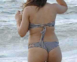 А это - 29-летняя Хилари Дафф, которая, почему-то "не стесняется своего лишнего веса и продолжает выходить на пляж в игривых бикини на завязках". Вот странная баба, правда?