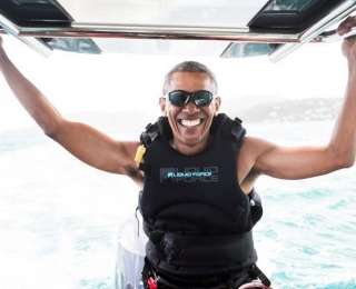Бывший президент США Барак Обама занимается кайтсёрфингом на острове Москито, Британские Виргинские острова, 7 февраля 2017 года.