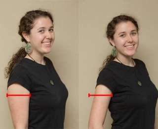Если вам сложно выглядеть естественно в такой позе, сначала положите руку на бедро, а затем опустите ее. Ваши плечи опустятся, и вам будет легче создать желаемый промежуток.