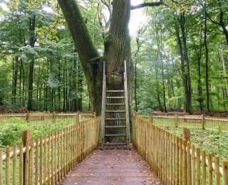Немецкий дуб – настоящий долгожитель. Ему уже более 500 лет и его история – сплошь легенды и романтические приключения. Более века назад это дерево спасло любовь мисс Орт, дочери местного лесника, и господина Шутте-Фальше. Молодым запретили встречаться, по мнению отца девушки, союз был неблагополучным. Правда, возлюбленные решили идти наперекор родительскому запрету, тайно обменивались письмами, соорудив тайник в дупле этого дерева. Когда стало ясно, что любовь этой пары сильнее предрассудков, им разрешили пожениться. Свадебную церемонию устроили возле дуба-спасителя 2 июня 1891 года.