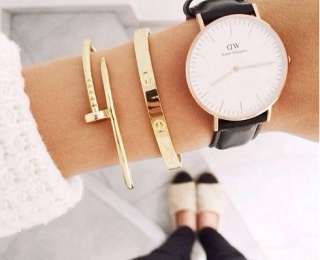 И часы – выберите нейтральный мужской вариант. Грубость формы и массивность подчеркнут нежность женского запястья. Носить можно в любом стиле. Маникюр при этом должен быть нейтральным.