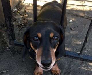 Пухлый самец таксы по кличке Мило устал ждать, когда хозяйка посадит дочь в машину и вернется за ним, а потому полез через решетку и крепко застрял. Его владелица Сара побоялась повредить спину собаки и вызвала на помощь пожарных. Через полчаса такса уже грелась на солнце.