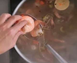 - Достаньте одну креветку и проверьте ее готовность, предварительно окунув в очень холодную воду. Если креветка не резиновая — достаньте все остальные и окуните их также в холодную воду. Таким образом креветки перестанут готовиться, и вы их точно не переварите.