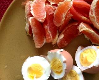 - Обед: 1 апельсин, вареное яйцо, стакан кефира.