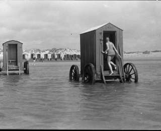 В некоторых местах Британии можно увидеть пляжные домики на колесах - это купальные машины, появившиеся в эпоху викторианской Англии. Чтобы искупаться и при этом не показаться нагишом на людях, британцы нанимали повозки с лошадями, которые завозили и вывозили их из воды. Будка такой повозки служила кабинкой для переодевания.