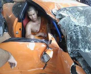 Попытка 31-летнего буддийского монаха прокатиться на спорткаре Nissan Silvia S15 своего друга закончилась неудачно: едва выехав за ворота храма в Таиланде, он влупился в дерево. Результат: авто в хлам, у монаха сломана рука и порезана нога, а его друг потерял сознание.