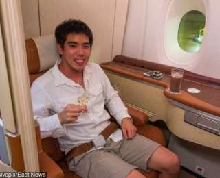 Молодой предприниматель из Сингапура Дерек Лоу (Derek Low) очень часто летает по делам, и ему удалось накопить огромное количество бонусных миль — 93,5 тыс. Все это богатство он решил одним махом поменять на билет из Сингапура в Нью-Йорк на самом шикарном в мире рейсовом самолете. Он хотел узнать, как летают богачи и знаменитости, в числе которых Леонардо Ди Каприо и Морган Фриман, а заодно показать это всему миру. В денежном выражении билет обошелся бы ему в $ 23 тыс. (примерно 1,3 млн рублей).