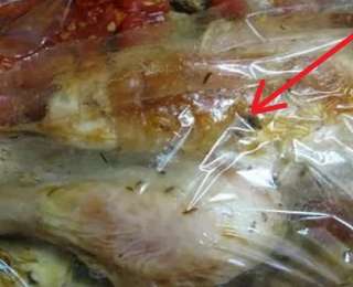 - Чтобы продукты подрумянились, а не сварились, за 20 минут до окончания приготовления, следует аккуратно разорвать рукав сверху. Некоторые производители предусмотрели такую потребность и для удобства сделали пунктирный шов.