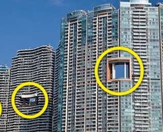 Огромные отверстия в зданиях — такую непривычную для европейца архитектуру можно увидеть сегодня в Гонконге.