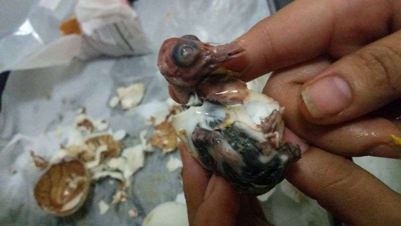 Балют - известный на весь мир деликатес, который одним своим видом может довести некоторых людей до тошноты. Тем не менее самые смелые туристы, побывавшие на Филиппинах, не могут себе отказать в удовольствии попробовать вареное яйцо с зародышем внутри. Этому утенку было 18 дней.