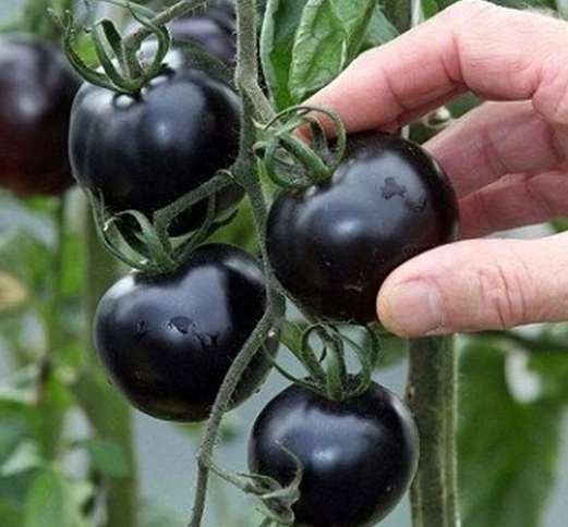 Точно такие же, как и красные — только черные. Особый сорт помидоров отличается более насыщенным вкусом, однако выращивают их редко, поскольку люди очень уж недоверчиво относятся к необычной окраске.