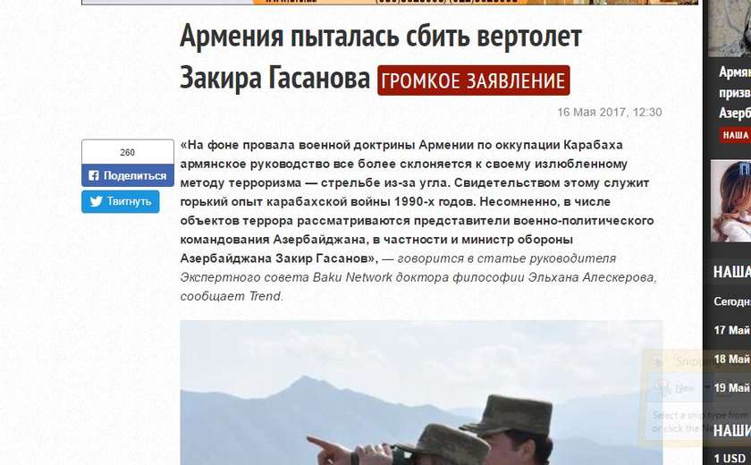 Да-да, товарищи, коварные хаи опять замыслили недоброе - уничтовить вертолет, в котором летел МО Азербайджана, но доблестные аскяры не дали нам сделать это - выпустив несколько ракет по позициям расчета ЗРК ОСА и после нескольких промахов - уичтожили... машину заправки расчета...
