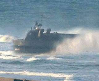 Фотография выпущена Центральным Телеграфным Агентством Северной Кореи 26 марта 2013 года. Высадка производилась, как говорит агентство, в засекреченном месте и что в маневрах принимала целая флотилия лодок на воздушной подушке.