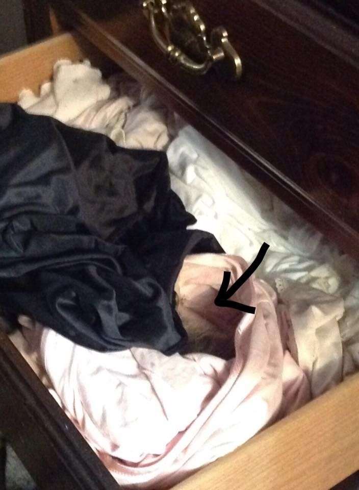 Бриттани МакЛани из штата Алабама открыла комод и обнаружила в одном из ящиков опоссума, дремавшего в гнезде из нижнего белья. Женщина переместила животное в коробку и выпустила в лес. На следующий день она решила проверить другой ящик и там тоже оказался опоссум. Третьего "гостя" обнаружила мать Бриттани в три часа ночи - опоссум копошился в ящике среди трусов.