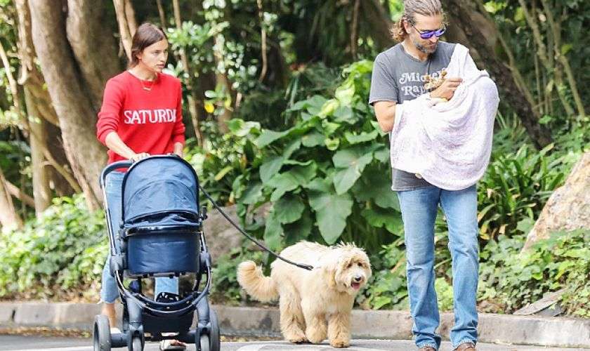 В марте Ирина Шейк и Брэдли Купер впервые стали родителями - у звездной пары родилась дочь Леа де Сена. Скрывать от журналистов новость о рождении малышки им удалось две недели. И модель, и актер избегают в интервью тем, касающихся их романа и недавно родившегося ребенка, поэтому поймать знаменитостей вместе да еще и с малышкой – большая удача. На днях папарацци удалось сделать серию кадров звездного семейства во время их прогулки в парке Санта-Моники. На фото Брэдли держит Лею на руках и кормит из бутылочки, не забывая при этом закрывать ее личико пеленкой от объективов папарацци.