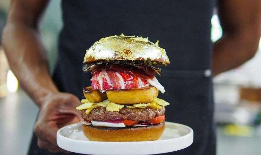И в довершение ко всему прочему булочка гамбургера (стоимостью 120 евро в отдельности) покрыта 24-каратным золотым листом.
