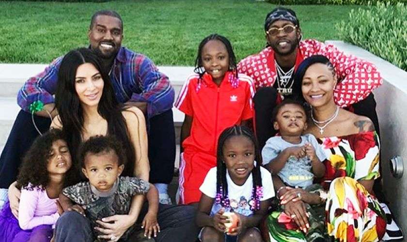 Канье Уэст и Ким Кардашьян с детьми