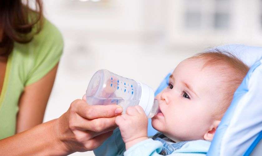 «Если малыш всё ещё хочет пить между кормлениями, но не хочет сосать грудь или уже выпил свои 950 мл смеси в сутки, лучший дополнительный напиток — это вода. В таком случае давайте ему 60–120 мл между кормлениями, особенно в жару». Когда ребёнку исполнится год, он может уже регулярно пить воду. ЗАПОМНИТЕ: Вода прекрасно подходит для детей старше года — и уж точно гораздо лучше сладких напитков и соков.
