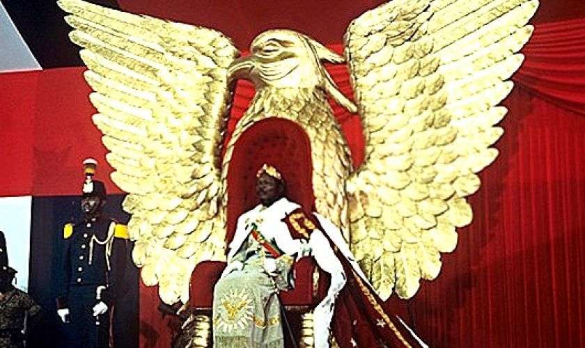 Надев самые дорогие туфли в истории, украсив голову короной с 2000 бриллиантов (что составляет 25% годового экспорта страны), он прошествовал под французский оркестр к двухтонному золотому трону. В эти же дни в стране сотнями умирали люди из-за отсутствия врачей и тотальной нищеты и голода.