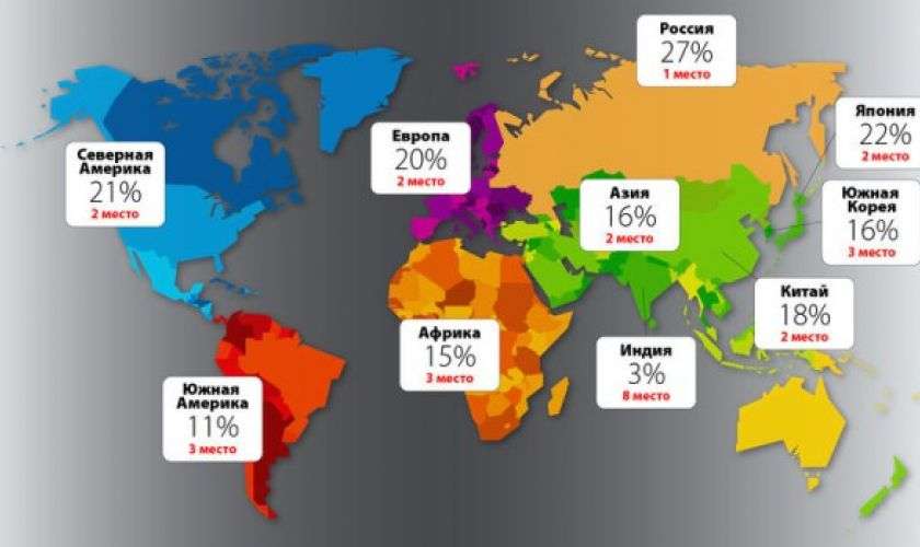Больше нашего любят такой окрас кузова только в Европе (17%) и Южной Корее (19%).
