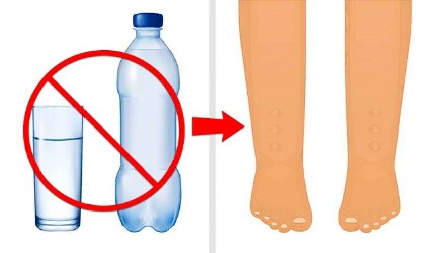 При обезвоживании на начальной стадии организм начинает запасать жидкость на всякий случай, в результате на щиколотках, запястьях и нижней части живота появляются отеки.