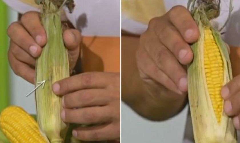 Если видите в продаже початки, очищенные от шелухи, проходите мимо. Часто, когда кукурузу «перекормили» удобрениями, на ее шелухе проступают темные пятна, а продавцы их не очень то и хотят показывать. Выбирайте початки в свежих зеленых листьях.