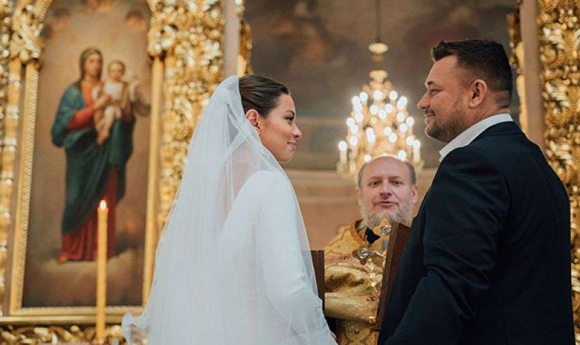 В жизни Сергея Жукова и его жены Регины Бурд произошло знаменательное событие: после 10 лет брака они обвенчались в Храме большого Вознесения Господня на Никитских Воротах - той самой церкви, где много лет назад венчались Александр Пушкин и Наталья Гончарова. На церемонии присутствовали только ближайшие родственники семьи и трое детей Сергея и Регины - Энджел, Ника и Мирон.