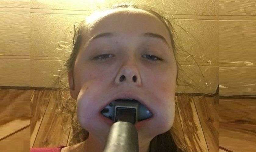 Естественно, подруга назвала слова Кейли блефом, но школьница внезапно на самом деле оказалась с молотком во рту. К счастью, через 10 минут она всё же смогла вытащить его, но снимок уже стал вирусным.