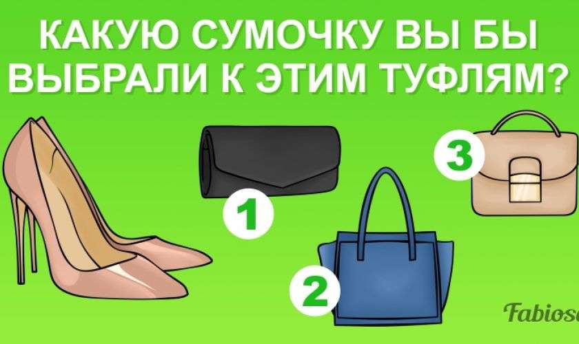 Каждая женщина, которая претендует на звание модницы, должна уметь комбинировать вещи. Существует даже правило, согласно которому вам достаточно иметь всего 10 вещей, чтобы каждый день выглядеть стильно и дорого! Все дело не в количестве, а в качестве и умении комбинировать одежду с правильными аксессуарами. Именно о них мы сегодня и поговорим. Этот тест позволит узнать кое-что о вашем вкусе. Итак, посмотрите на эти туфли и выберите сумочку, которая, по вашему мнению, идеально сочетается с ними!