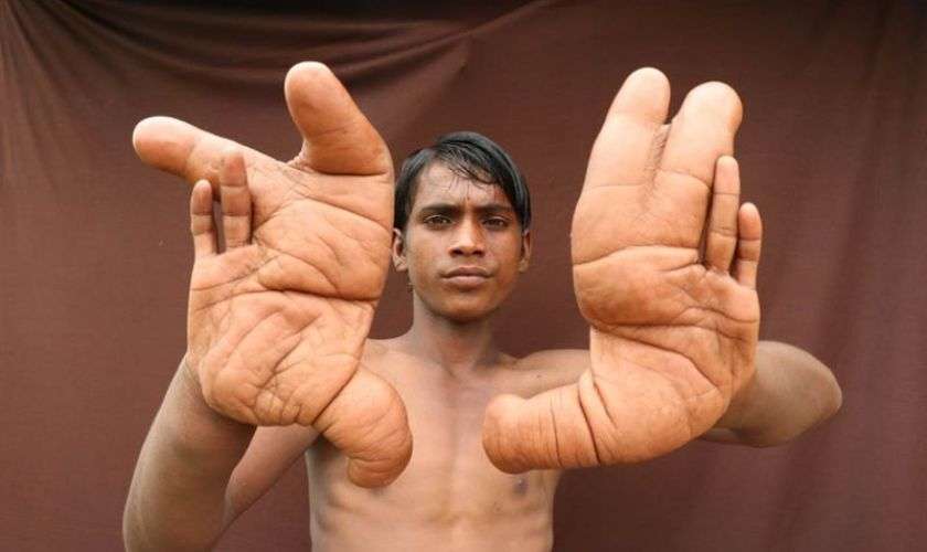 У 12-летнего Тарика из штата Уттар-Прадеш, Индия, огромные руки - его кисти выросли до 30 см. В деревне Тарика считают дьяволом, а гигантские руки - проклятьем, поэтому его избегают и даже отказали в поступлении в школу.