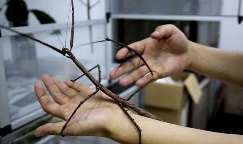 В Китае обитает насекомое размером с человеческую руку — это гигантский палочник.
