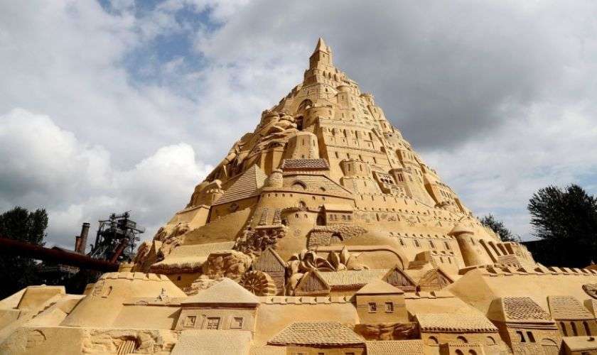 Для постройки великана потребовалось 3500 т песка и более трех недель времени. Над замком трудились инженеры и дизайнеры из десяти стран мира, каждый из которых украсил строение элементом, определяющим архитектуру того или иного региона на Земле.