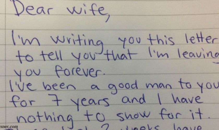 Я пишу тебе это письмо, чтобы сказать, что я оставляю тебя навсегда. Я был хорошим человеком для тебя в течение 7 лет. Но эти последние 2 недели были адом.