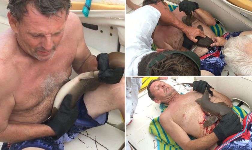 На опубликованных ниже кадрах запечатлено, как Маккарти лежит на полу лодки, а его друзья срезают с мужчины акулу.