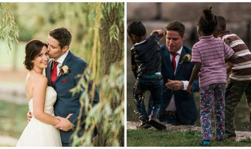 Пара из города Китченер, Канада, отмечала свою свадьбу на природе, когда жених Клейтон Кук неожиданно прыгнул в реку. Оказывается, Клейтон увидел под водой лицо тонущего мальчишки и без промедления бросился на помощь. Молодец жених: и ребятенка спас и перед гостями засветился.