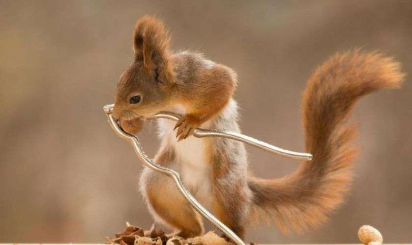 48-летний шведский фотограф Гирт Вегген (Geert Weggen) очень любит белок. Недавно он сделал серию снимков, на которых белки при помощи инструментов пытаются расколоть орехи. Фотограф использовал выездную студию и миниатюрные инструменты, чтобы создать впечатление, что грызуны поглощены работой. Получилось очень интересно и забавно.
