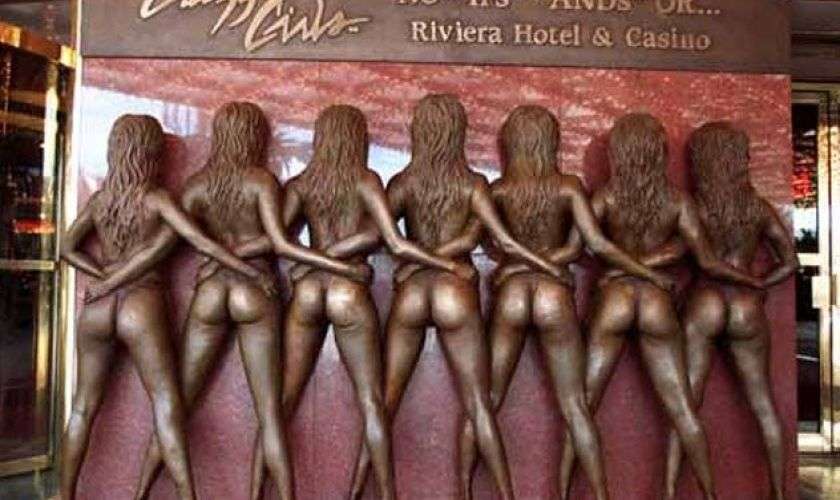 Совершенно неудивительно, что знаменитый Лас-Вегас получил известное всему миру прозвище «Город грехов». Грешить в этом месте просто необходимо, да и можно со сто процентной уверенностью сказать, что город однозначно вас не отпустит, если вы не вкусите большинство его запретных плодов. Статуя «Crazy Girls» олицетворяет собой женский спечённый коллектив, который стоит рука об руку, спиной к толпе. На самом деле, это было реальное шоу, и данные красавицы действительно выступали в одном из самых знаменитых отелей и казино в Лас-Вегасе под названием «Riviera». К сожалению, данное заведение было закрыто в 2015 году, и статую перевезли в известнейший ресторан в Нью-Йорке «Planet Hollywood».