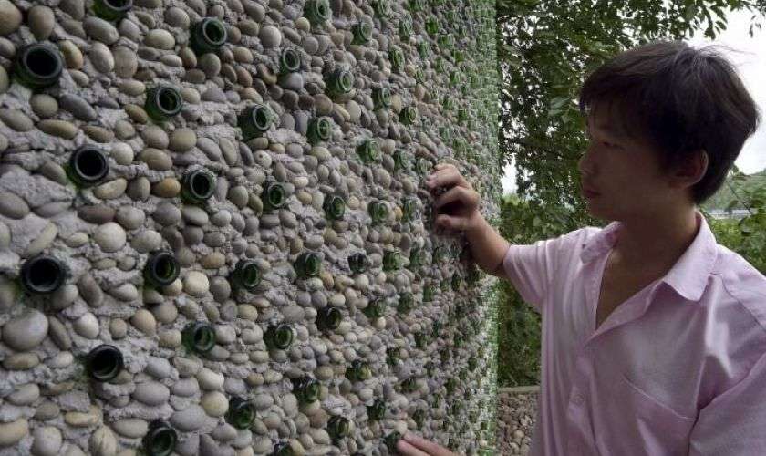 Надоело работать дома, а на офис нет денег? Решение проблемы от китайского архитектора, за 4 месяца построившего офис площадью 28 квадратных метров из 8500 пивных бутылок.